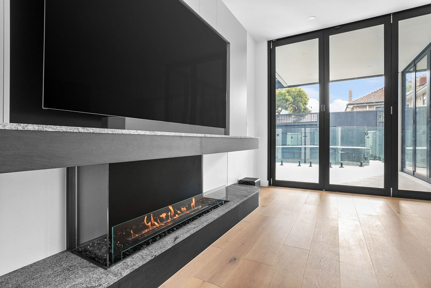 Real-flame fireplaces that integrate cleanly when gas or wood aren’t possible.