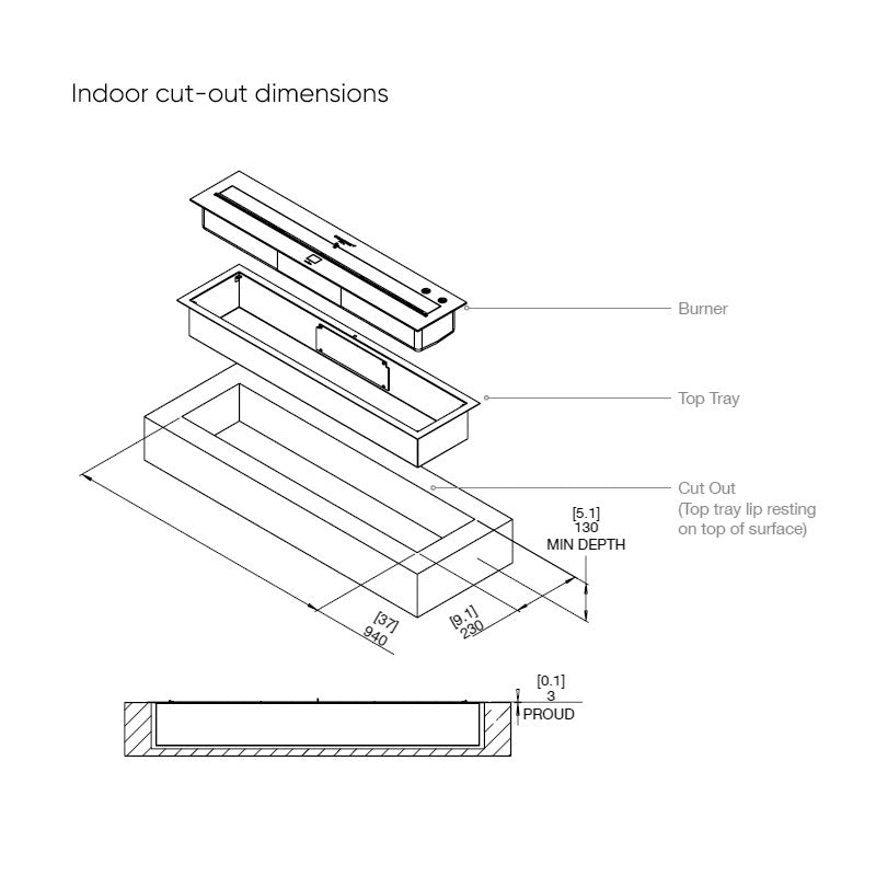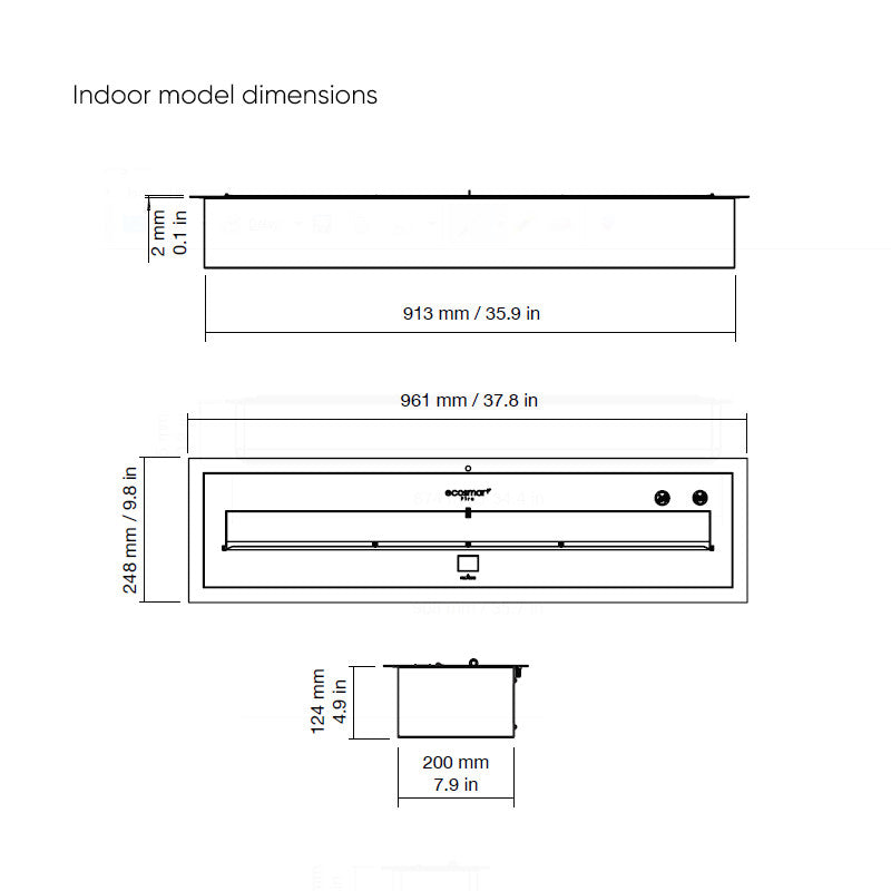 Dimensions: 961mm x 248mm x 124mm (Indoor)