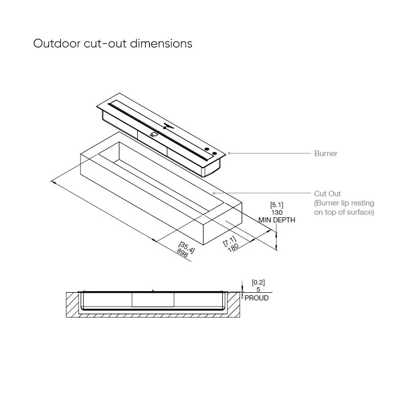 XL900 Ethanol Burner Insert Technical Drawing Plan View