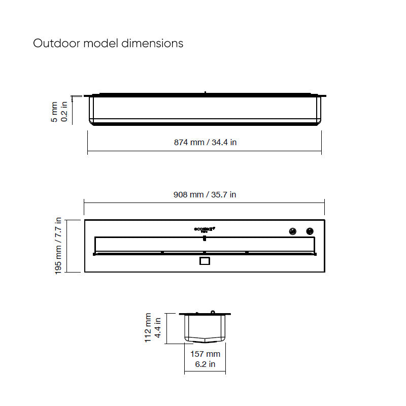 Dimensions: 908mm x 195mm x 112mm (Outdoor)